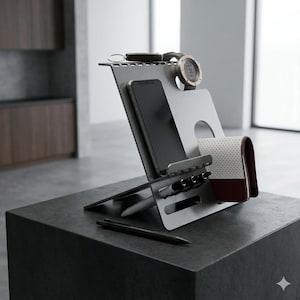 A DIY Metal Phone Stand Organizer DXF file is like a special blueprint for making a strong and sturdy stand for your desktop. It's a set of digital instructions that show you how to cut and shape the metal pieces you need. With this file, you can create a reliable and stylish stand for your desktop area. Just download the file, cut, bend, and you'll have a durable and attractive organizer ready to support your phone, wallets etc. It's a great way to add a personal touch and organization to your desktop!