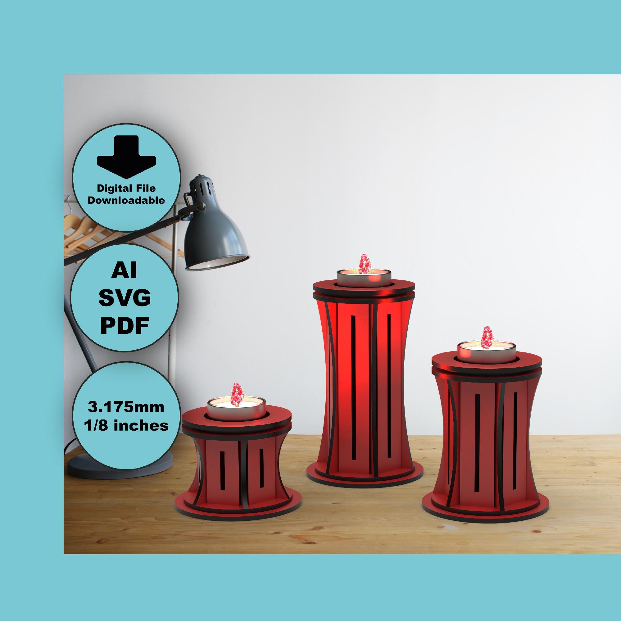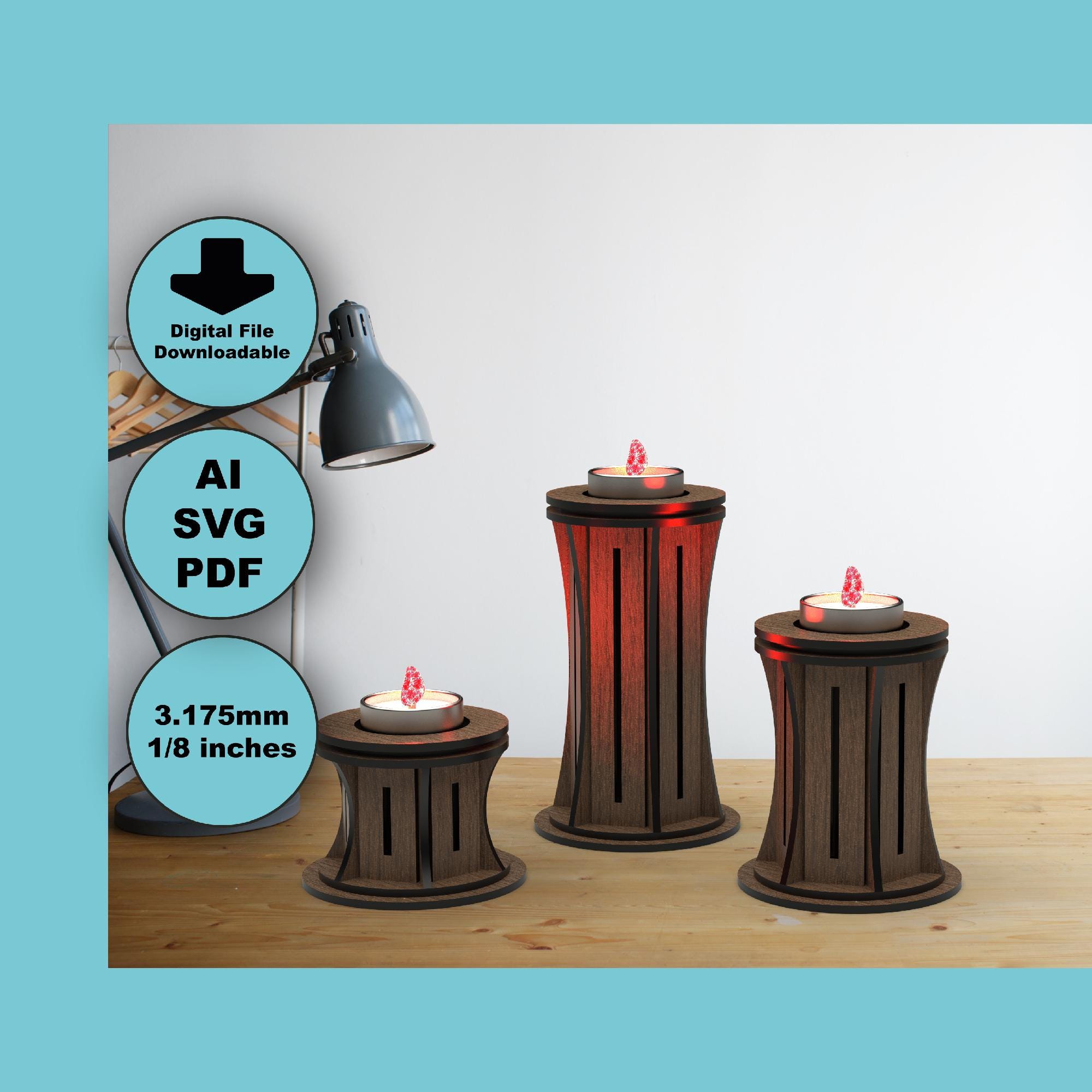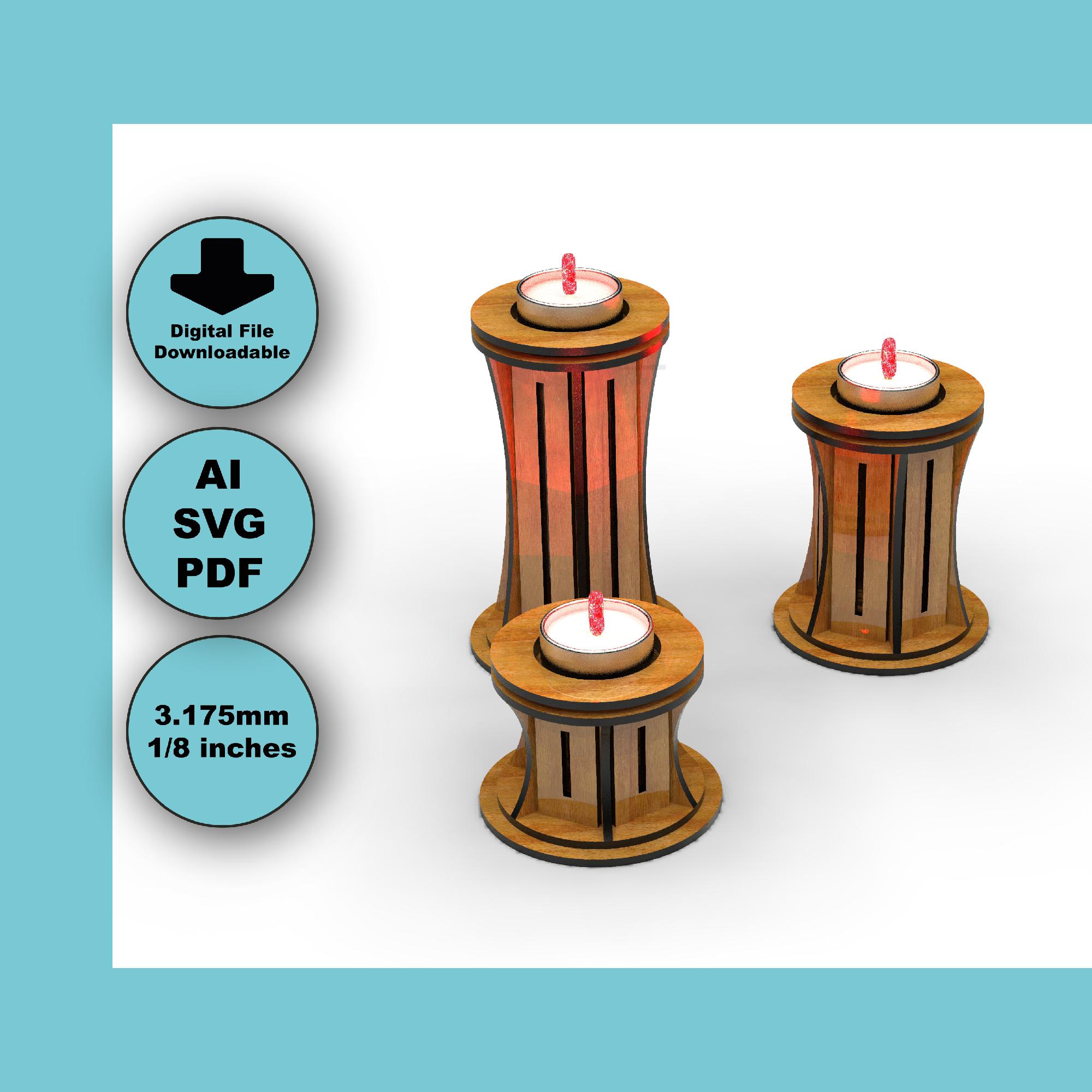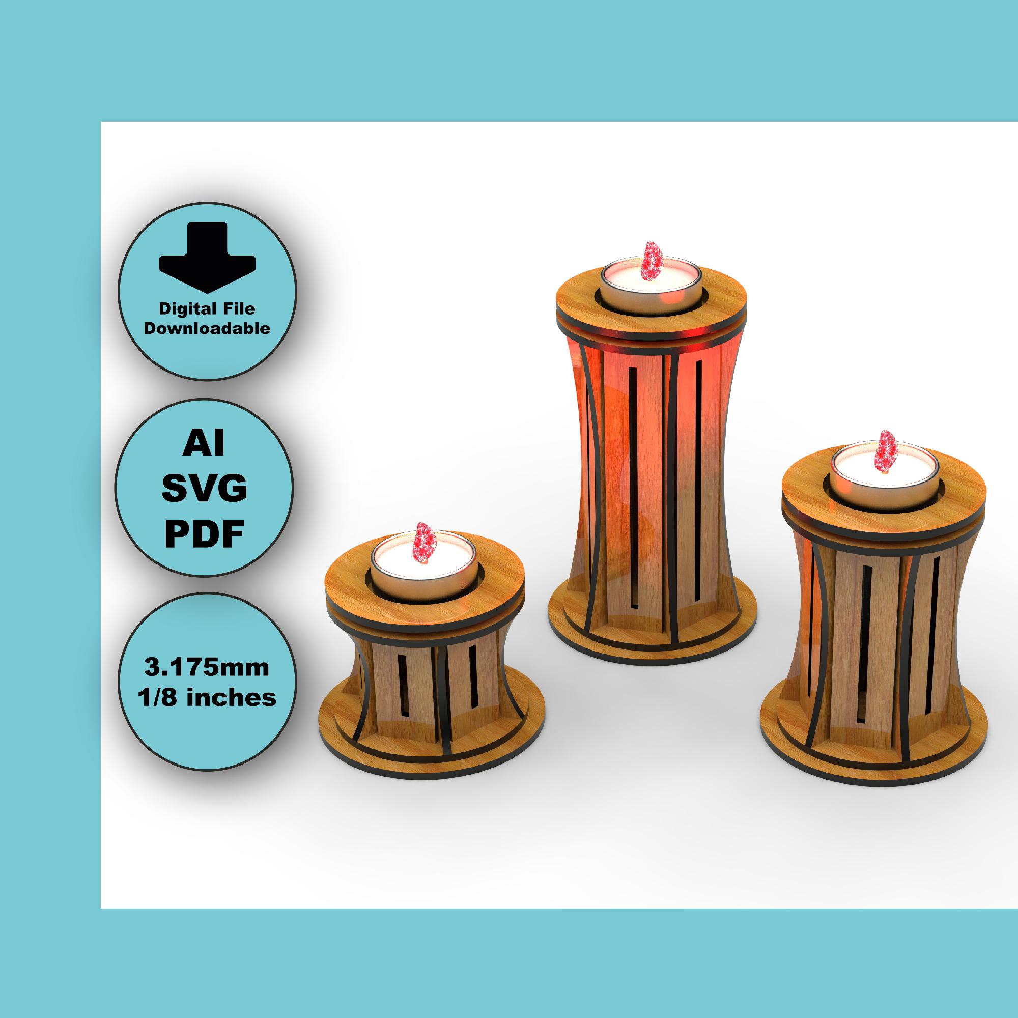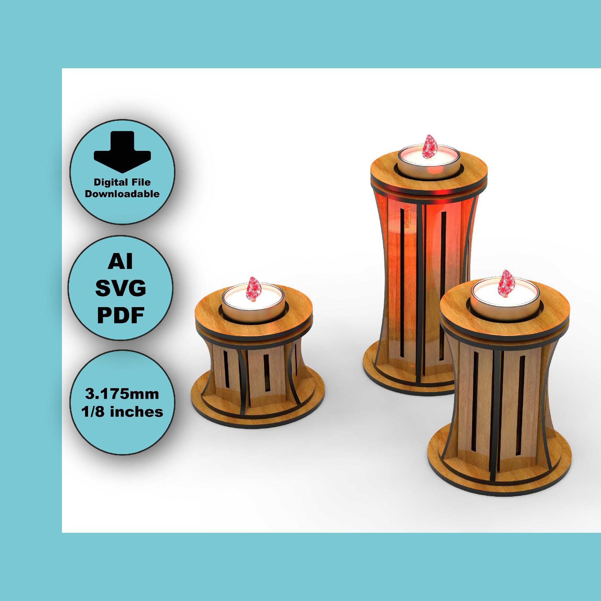 Simple Tealight Candle Set Svg Cut Files - Wooden Laser Cut Template (SVG / DXF / PDF)