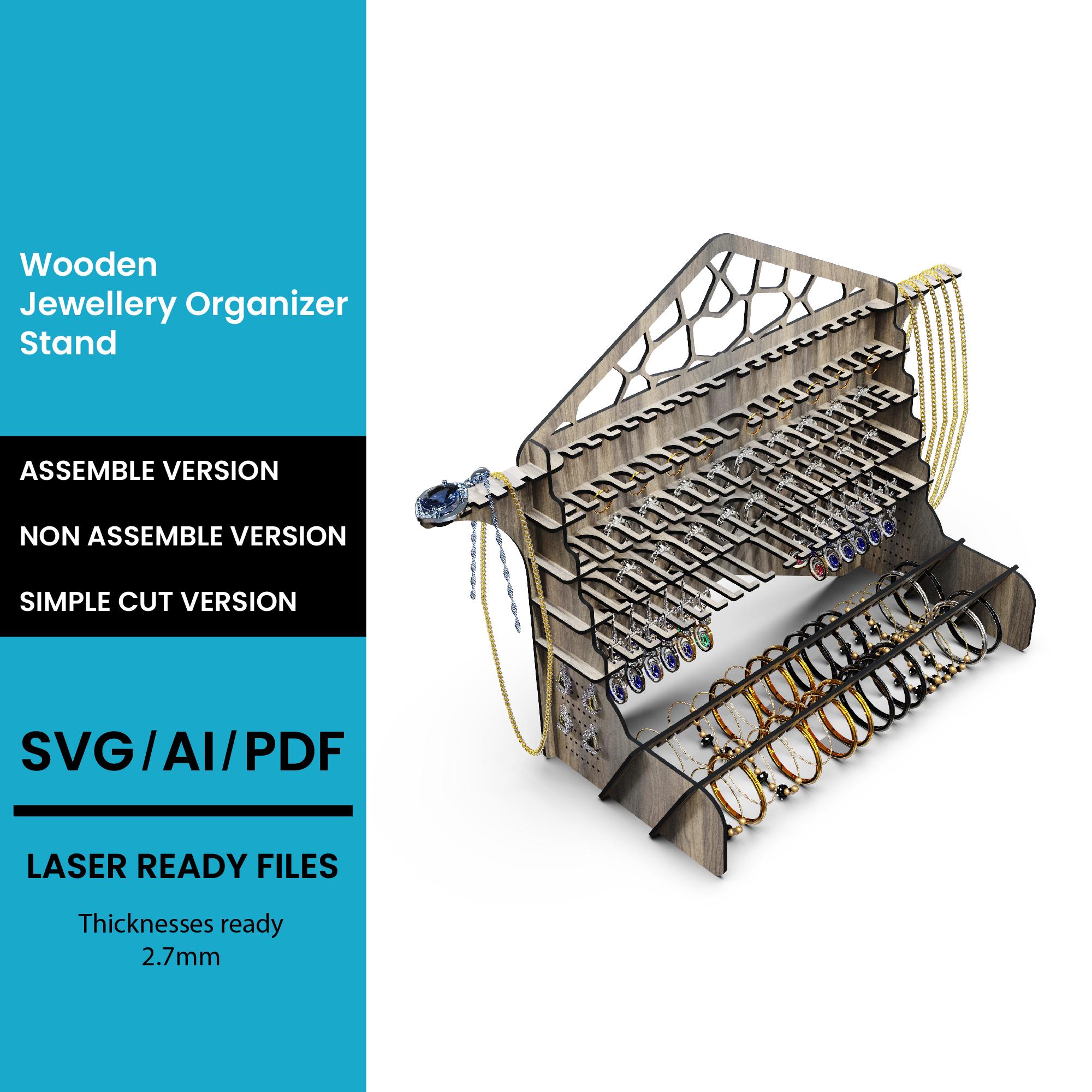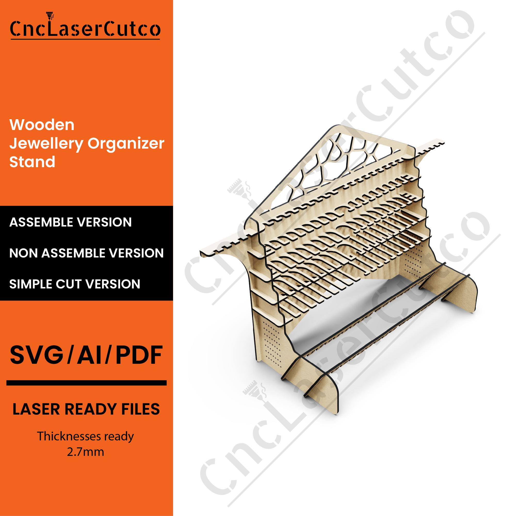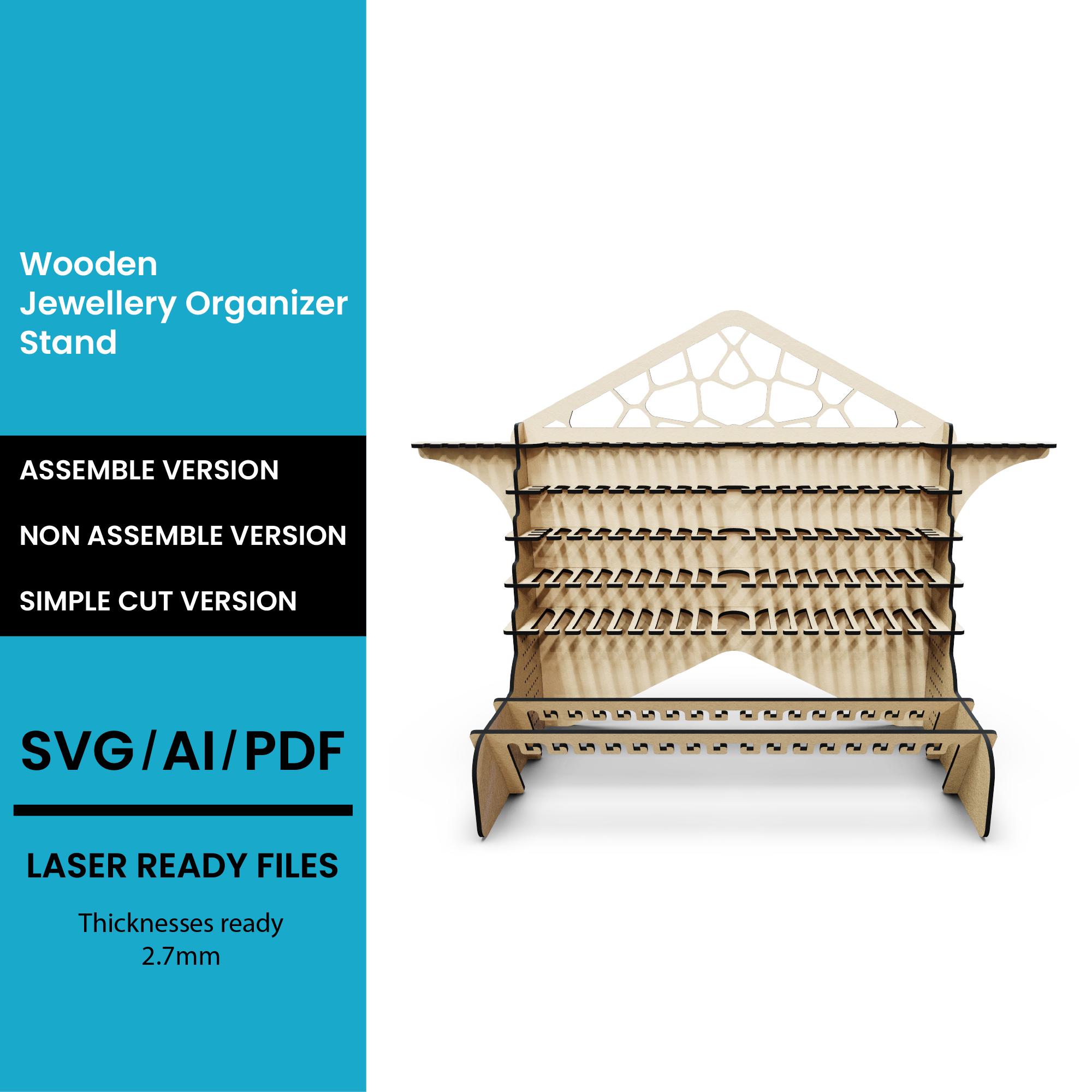 This listing features a versatile 4 Sided Hooked Stand SVG/DXF Laser Cut File, perfect for crafting a functional and stylish storage solution using your Glowforge or CNC machine. Ideal for organizing jewelry, keys, tools, or small decor items, this multi-sided design combines practicality with modern aesthetics.