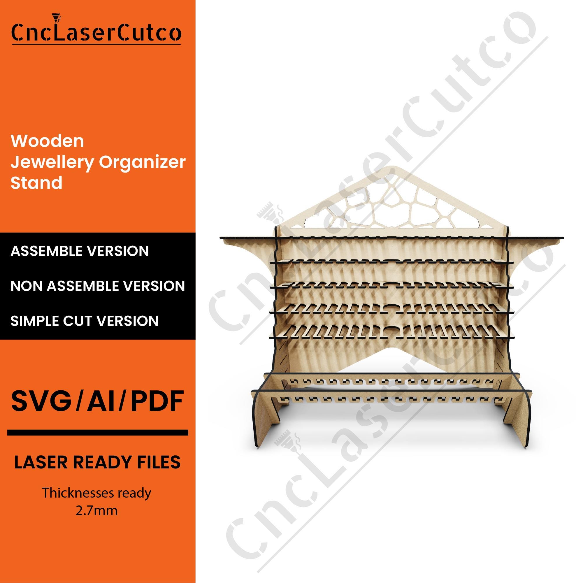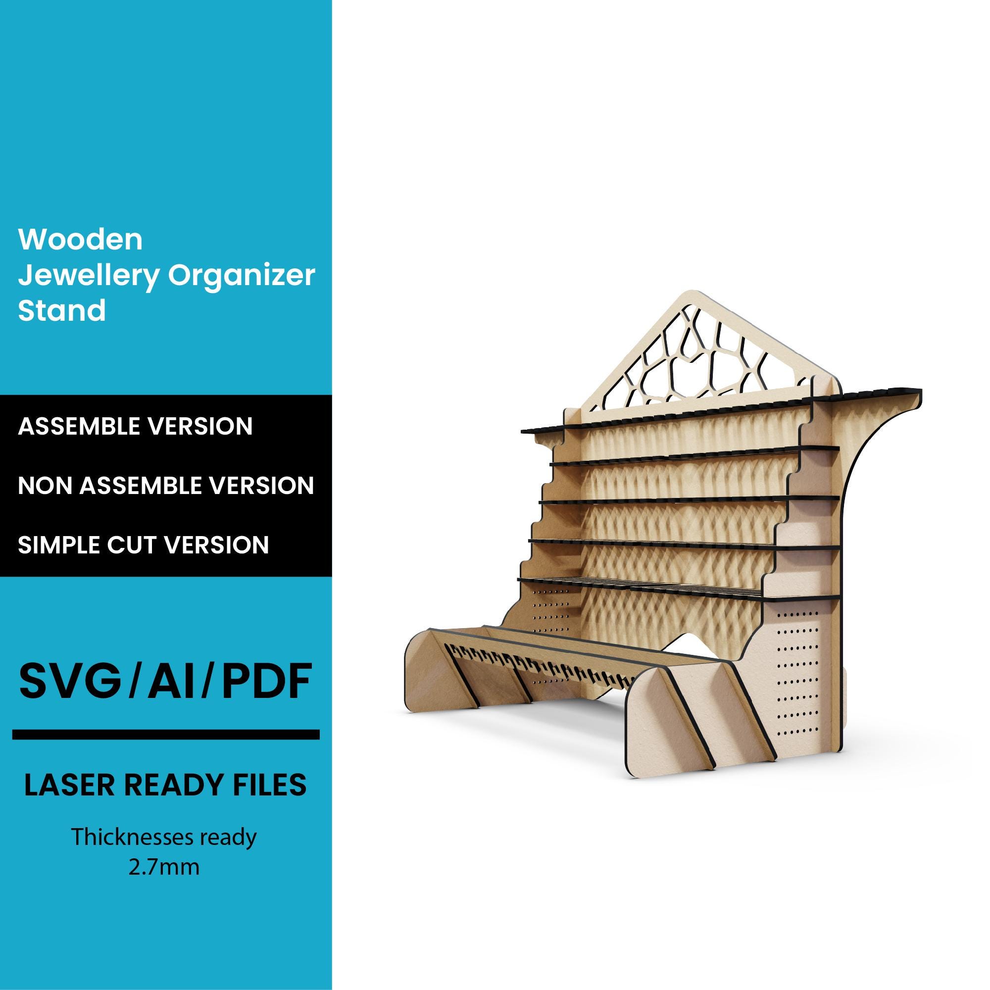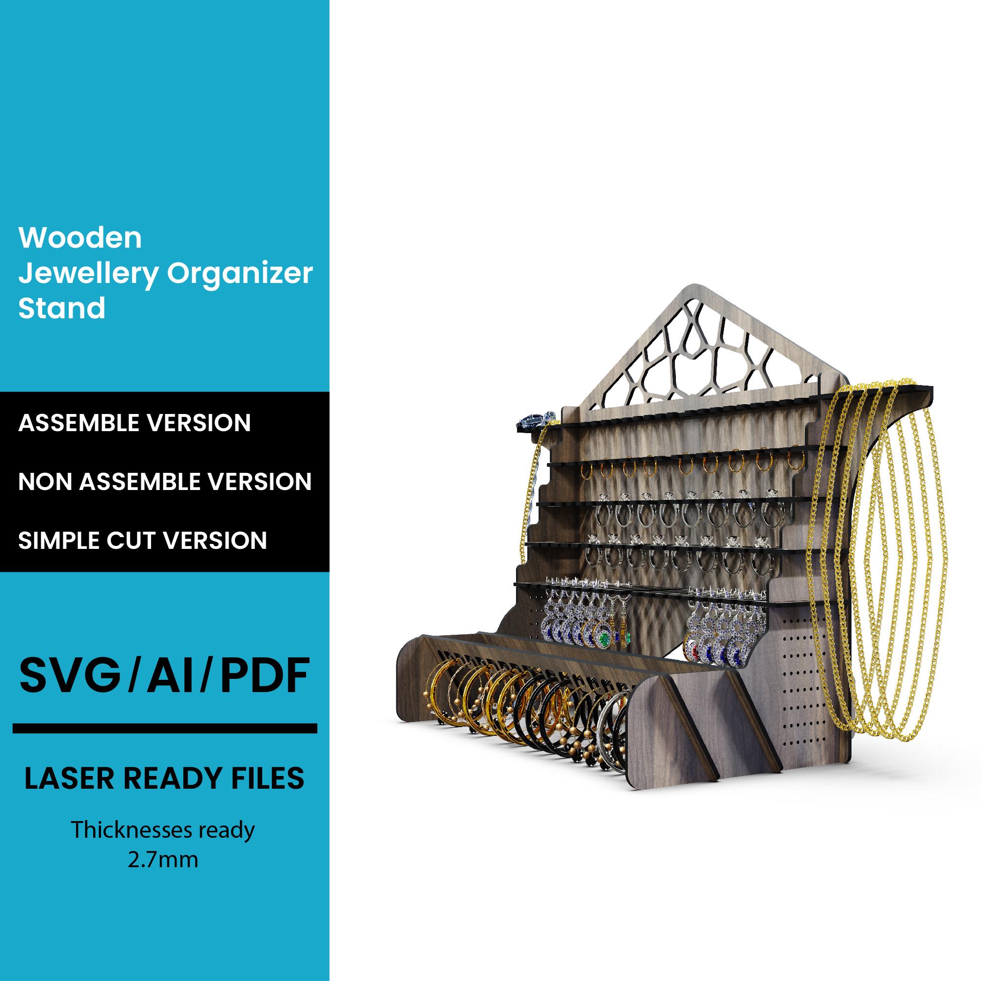 This listing features a versatile 4 Sided Hooked Stand SVG/DXF Laser Cut File, perfect for crafting a functional and stylish storage solution using your Glowforge or CNC machine. Ideal for organizing jewelry, keys, tools, or small decor items, this multi-sided design combines practicality with modern aesthetics.