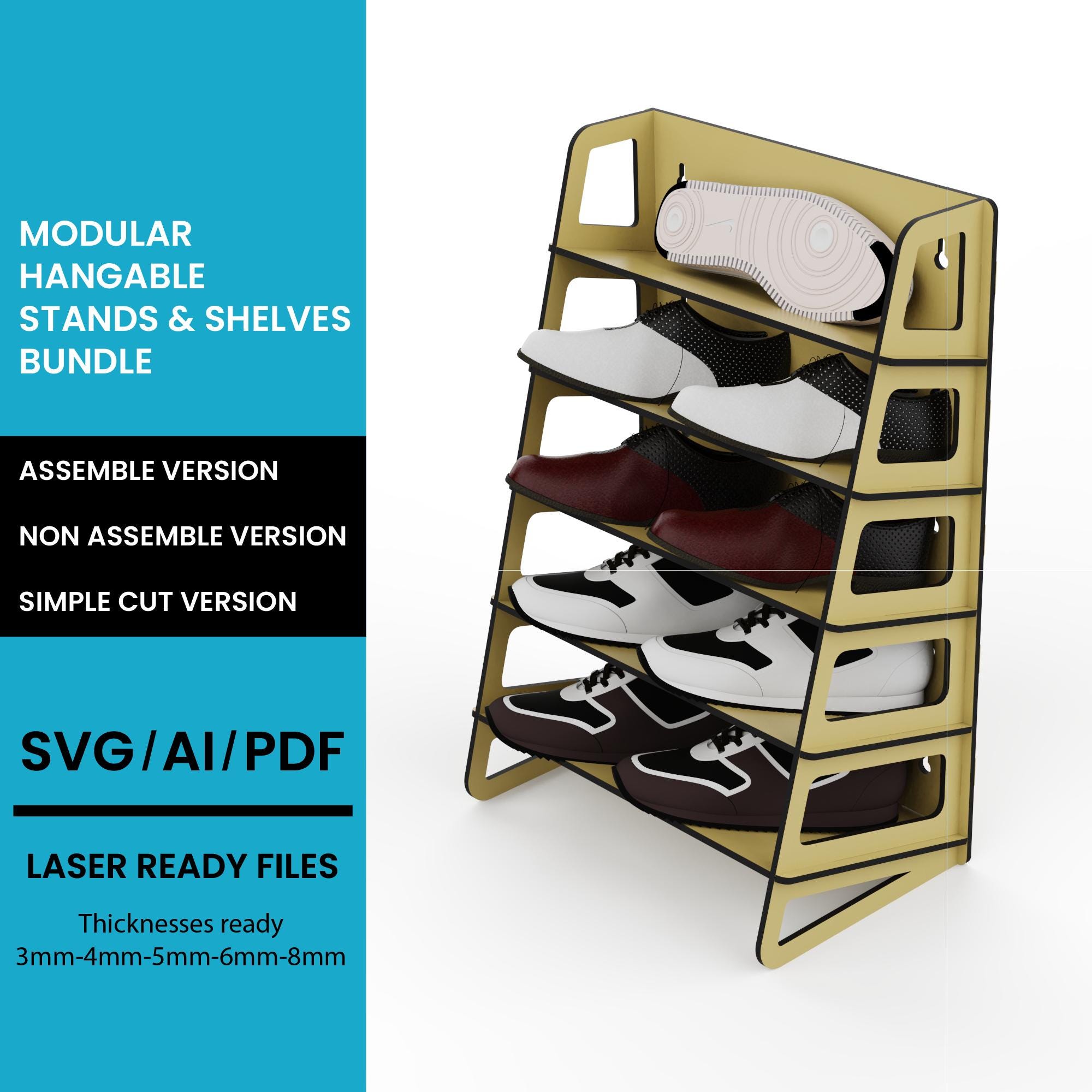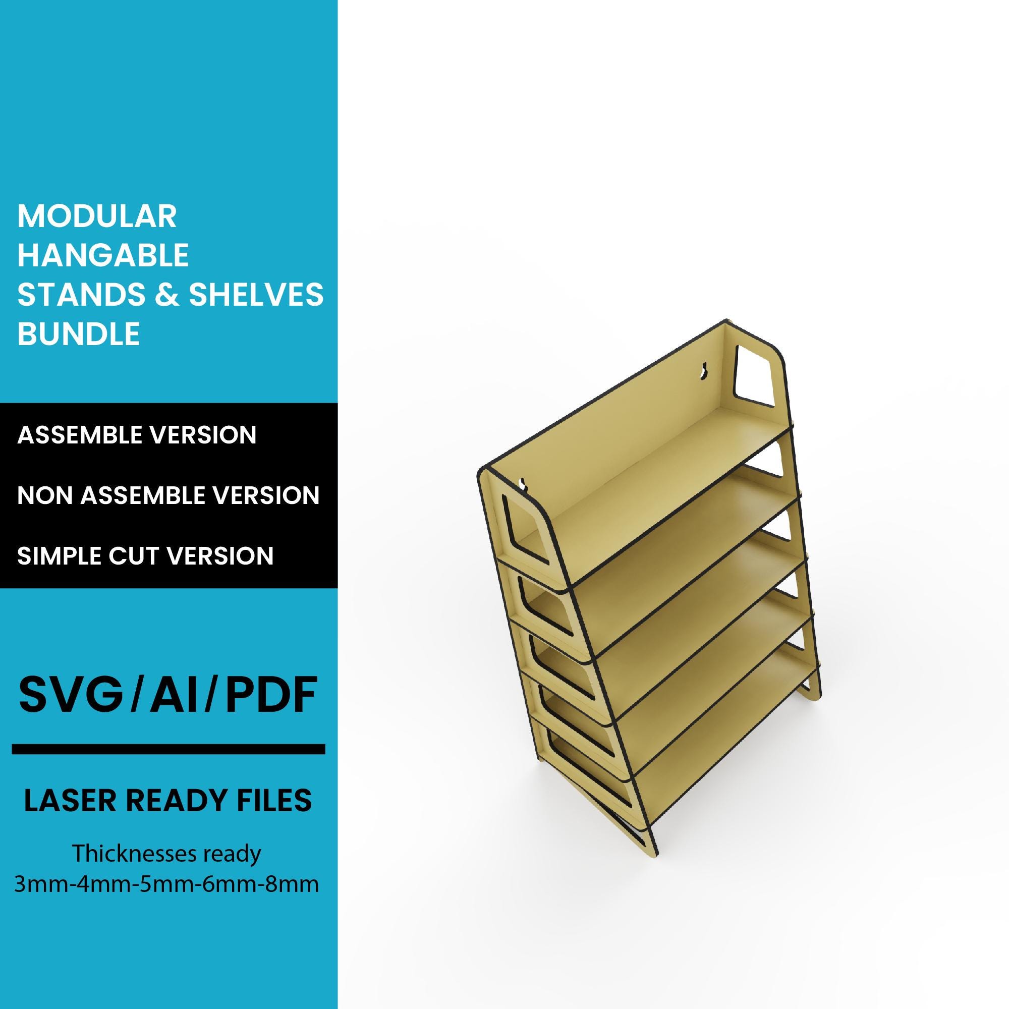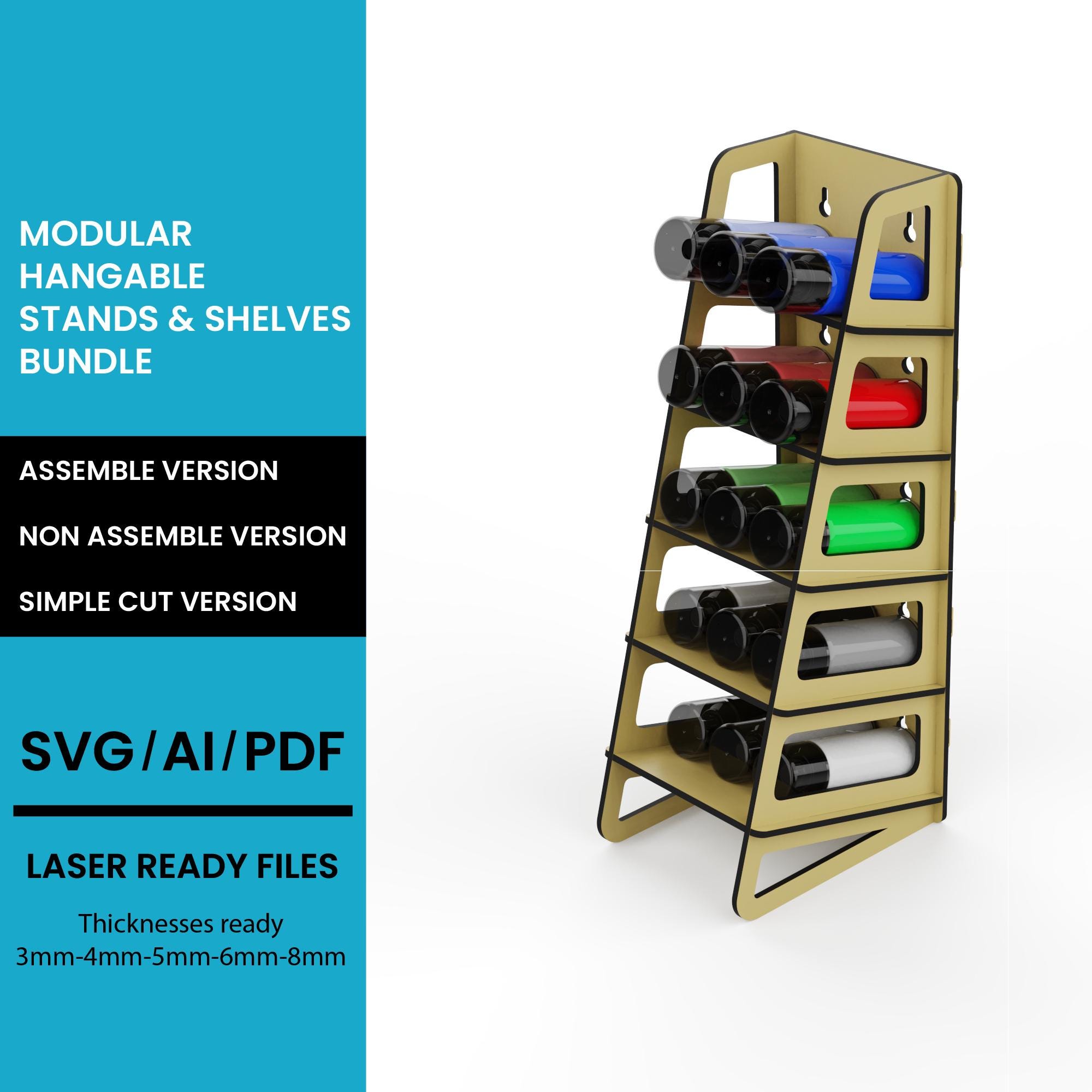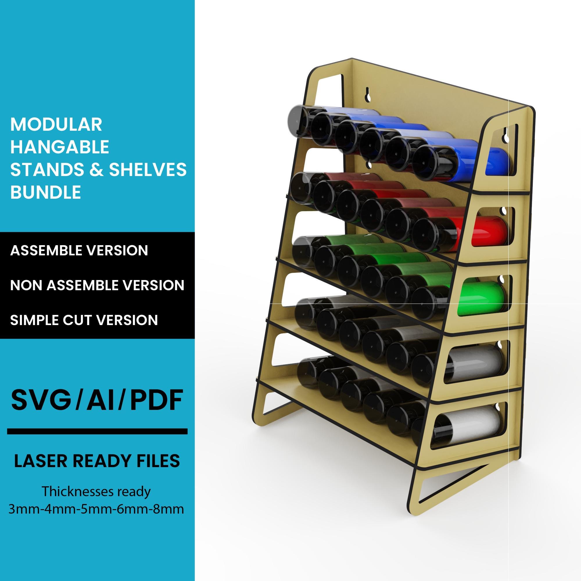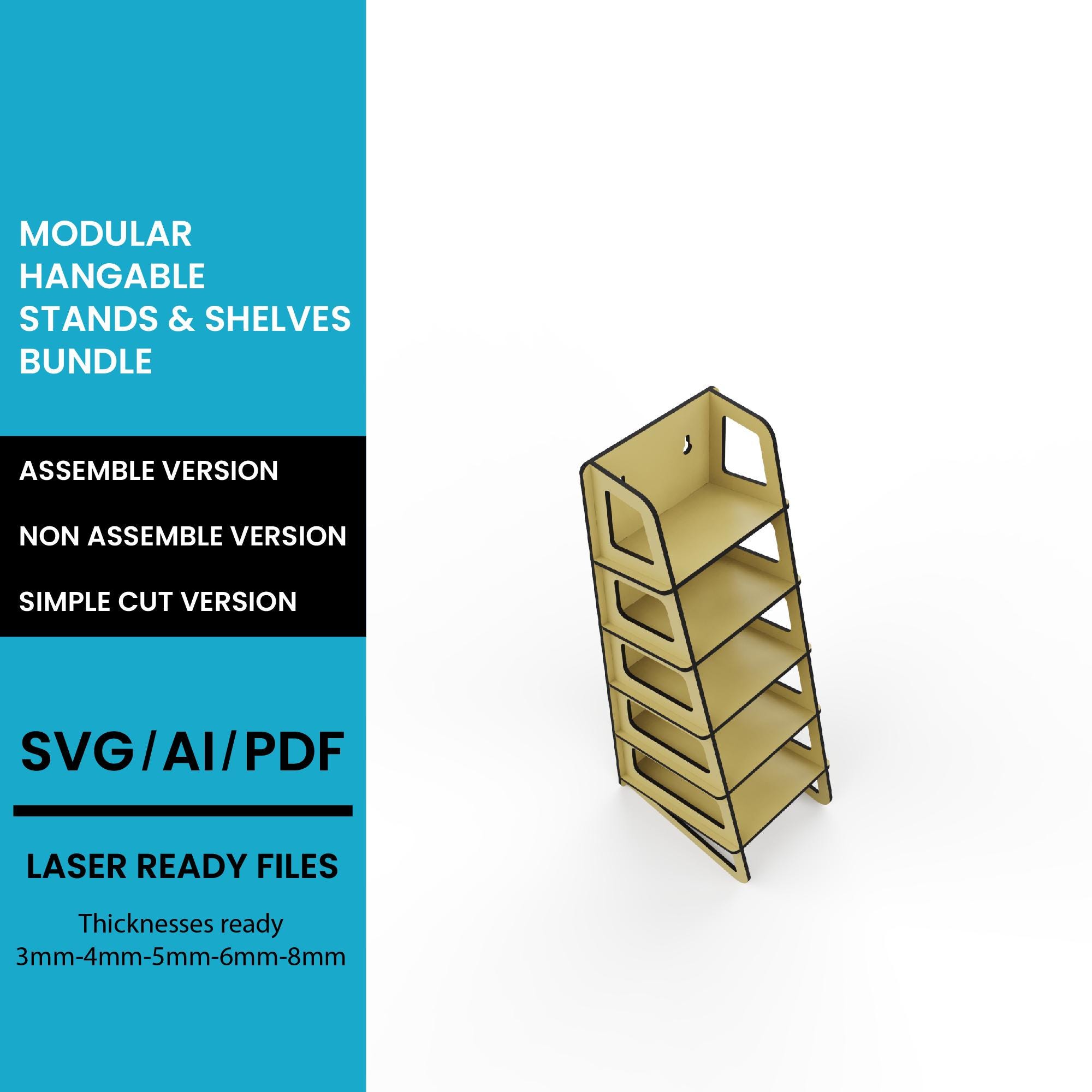 Tapered MultiFunctional Vertical Shelf Stand Organizer Stand SVG: Glowforge CNC Woodworking Plan (Digital Download)